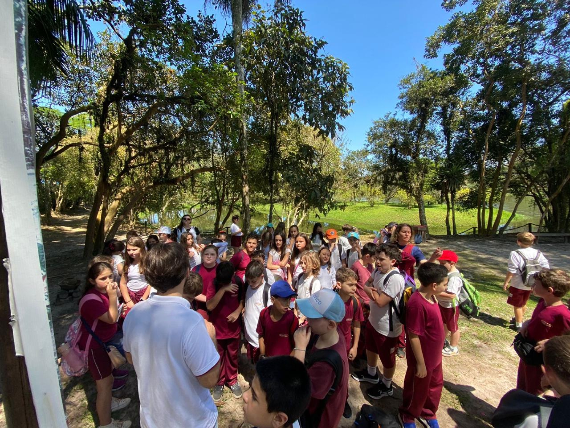 Além de toda a experiência imersiva proporcionada pelo passeio, o Parque Memorial do Descobrimento conta com a presença de um professor historiador, responsável por acompanhar e orientar as diversas turmas escolares, aprofundando o conhecimento sobre a história do nosso país. As aulas fazem parte de um importante processo educativo e possibilitam que crianças, jovens, adultos e idosos compreendam melhor o processo de chegada e colonização do Brasil, bem como os impactos gerados na fauna, na flora e nas civilizações que já habitavam o território. Educador, você também pode trazer sua turma para viver uma experiência única de imersão na história do Brasil. Entre em contato e agende sua visita.